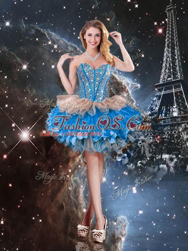 Wonderful Multi-color Ball Gowns Beading and Ruffles and Ruffled Layers Vestidos de Quinceanera Lace Up Organza Sleeveless Floor Length