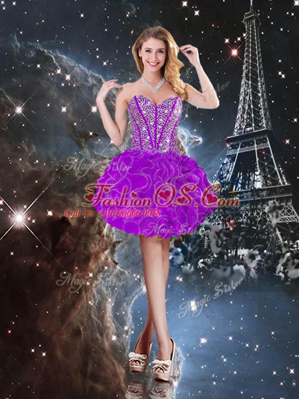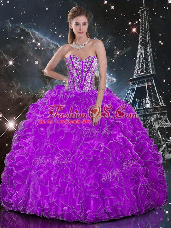 Sweetheart Sleeveless Lace Up Quince Ball Gowns Purple Organza