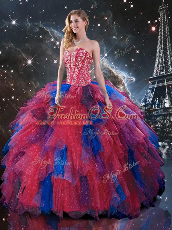 Eye-catching Multi-color Lace Up Ball Gown Prom Dress Beading and Ruffles Sleeveless Floor Length