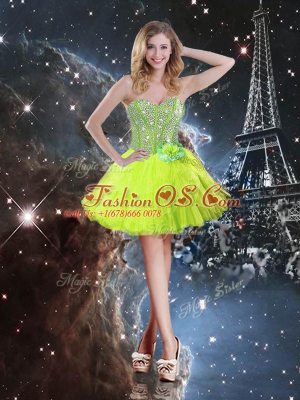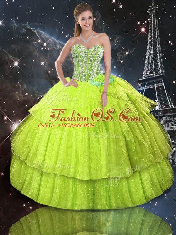 Fantastic Yellow Green Lace Up Quinceanera Dresses Ruffled Layers Sleeveless Floor Length