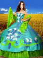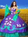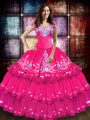 Sleeveless Brush Train Embroidery and Ruffles Lace Up Quince Ball Gowns