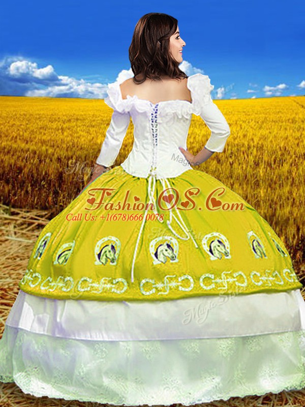 High End 3 4 Length Sleeve Embroidery Lace Up Sweet 16 Dresses