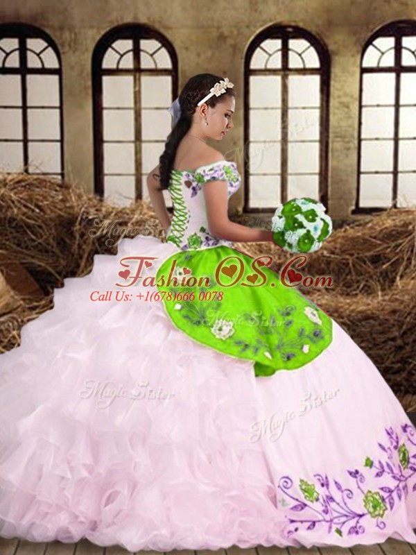 Super Multi-color Lace Up Sweet 16 Dress Embroidery and Ruffled Layers Sleeveless Floor Length