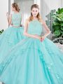 New Style Purple Zipper Sweet 16 Quinceanera Dress Lace and Ruffles Sleeveless Floor Length