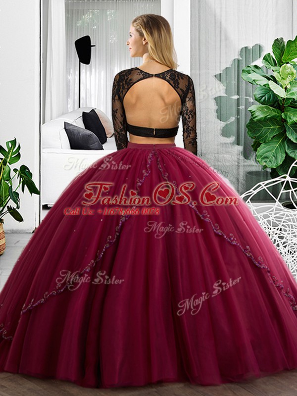 Stunning Dark Green Backless Scoop Lace and Ruching Quinceanera Dress Tulle Long Sleeves