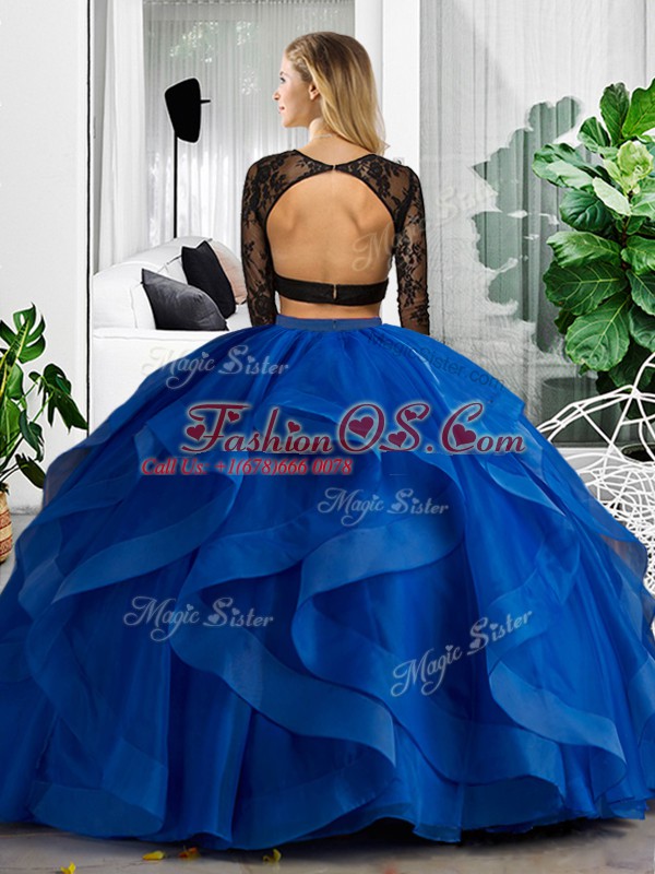 Scoop Long Sleeves Backless 15th Birthday Dress Dark Green Tulle