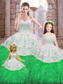 Captivating Floor Length Ball Gowns Sleeveless White And Purple Sweet 16 Dress Lace Up