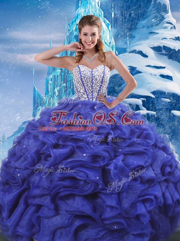 Floor Length Ball Gowns Sleeveless Blue Quinceanera Dresses Lace Up