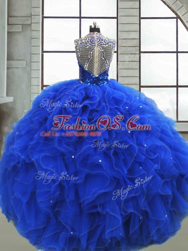 Inexpensive Floor Length Royal Blue 15 Quinceanera Dress Scoop Sleeveless Zipper