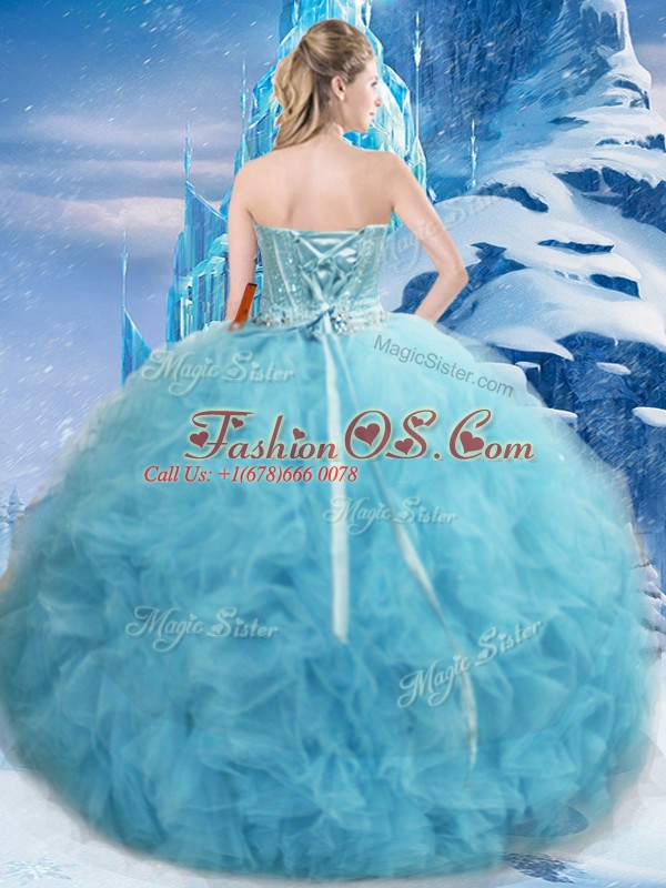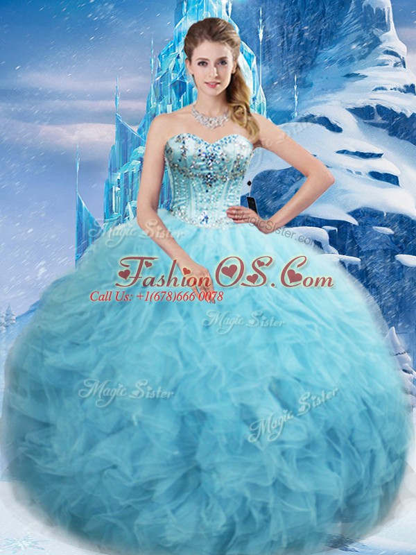 Aqua Blue Sleeveless Floor Length Beading and Pick Ups Lace Up Sweet 16 Quinceanera Dress