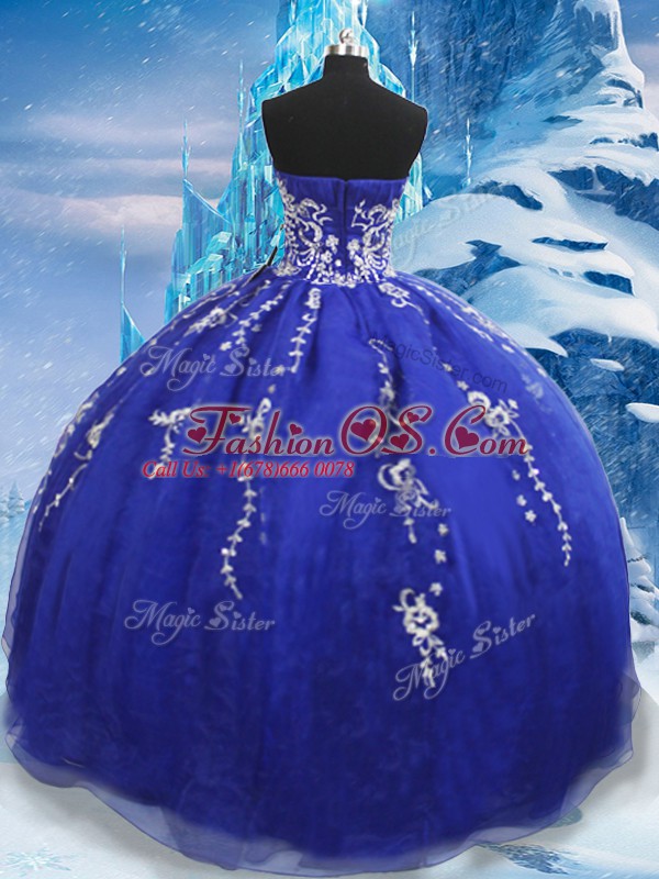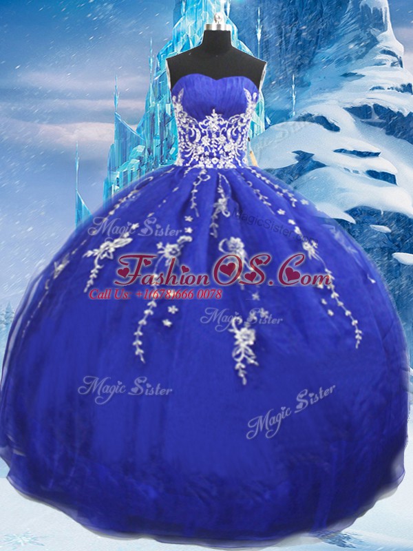 Suitable Blue Lace Up Sweetheart Appliques 15 Quinceanera Dress Organza Sleeveless
