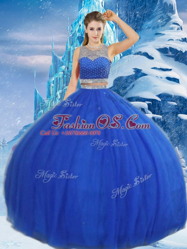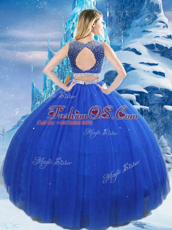 Royal Blue Sleeveless Beading and Sequins Asymmetrical Sweet 16 Dresses