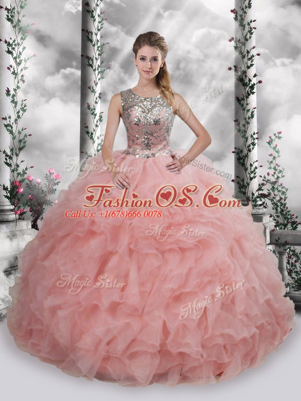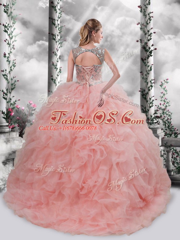 Glamorous Sleeveless Lace Up Floor Length Beading and Ruffles 15th Birthday Dress
