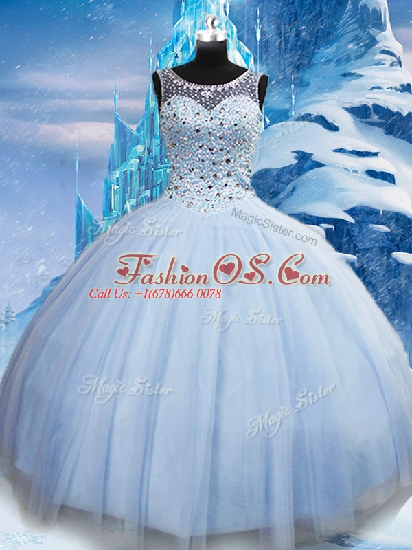 Best Selling Light Blue Sleeveless Tulle Lace Up Sweet 16 Dress for Military Ball and Sweet 16 and Quinceanera