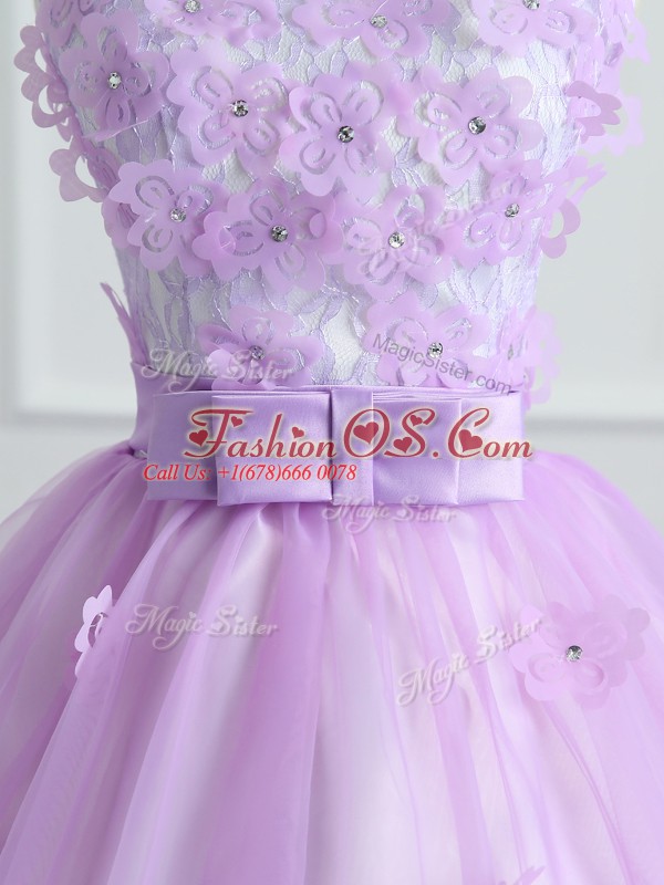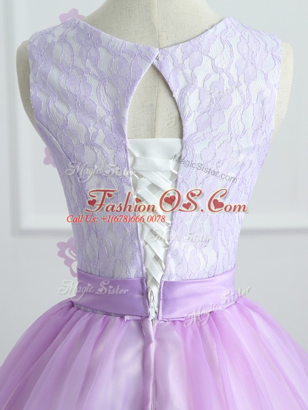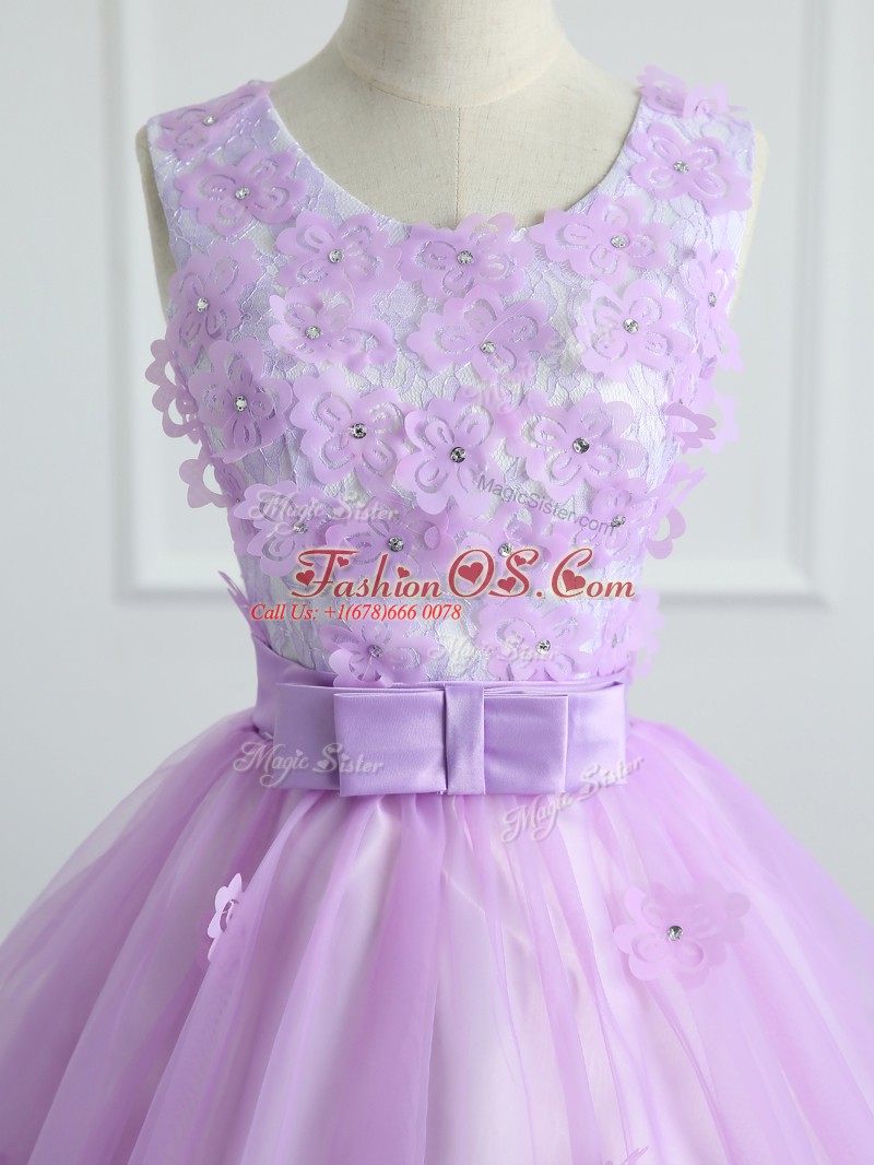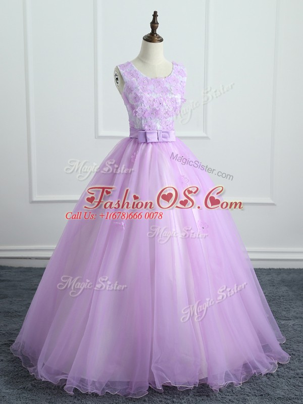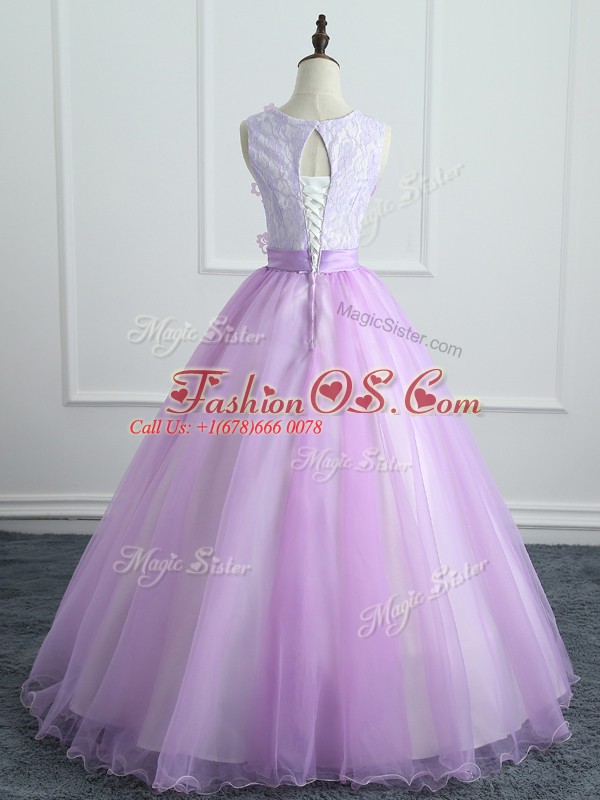 Dramatic Lavender Ball Gowns Scoop Sleeveless Organza Floor Length Lace Up Lace and Appliques and Bowknot 15 Quinceanera Dress