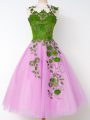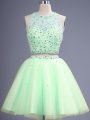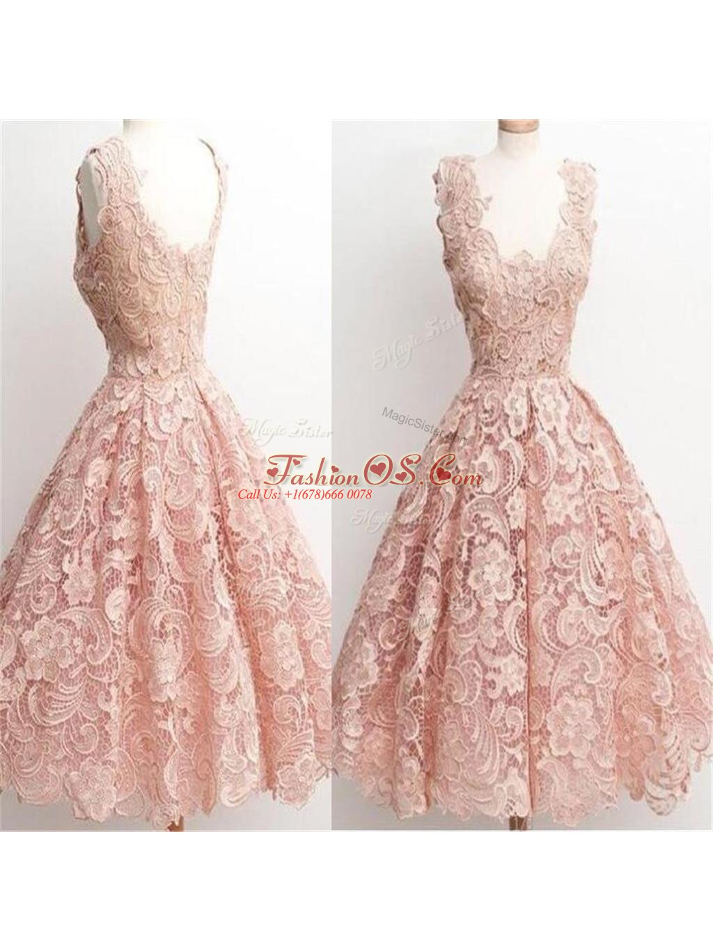 Aqua Blue Lace Zipper Bridesmaids Dress Sleeveless Knee Length Lace