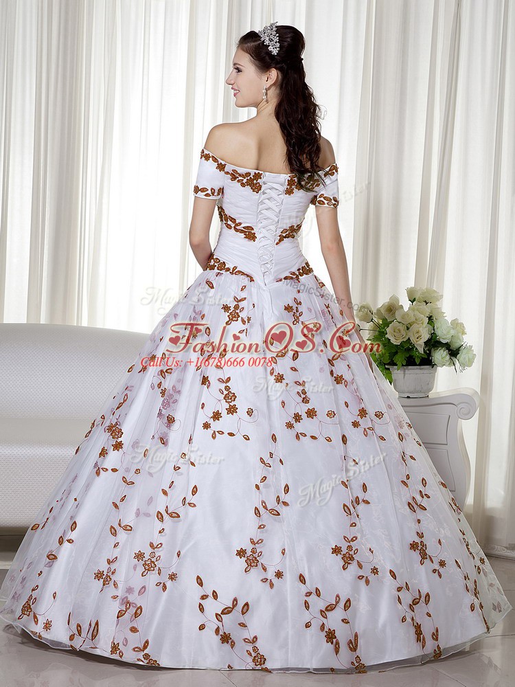 Short Sleeves Embroidery Lace Up Quinceanera Gowns
