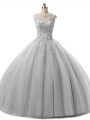 Black Ball Gowns Scoop Sleeveless Tulle Floor Length Lace Up Beading and Lace Vestidos de Quinceanera