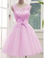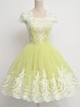 Apple Green Lace Up Wedding Guest Dresses Lace Sleeveless Knee Length