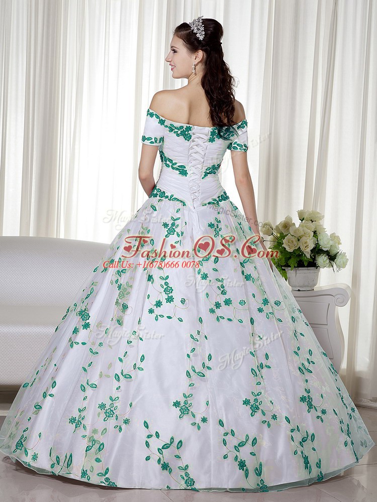 Off The Shoulder Short Sleeves Organza 15th Birthday Dress Embroidery Lace Up