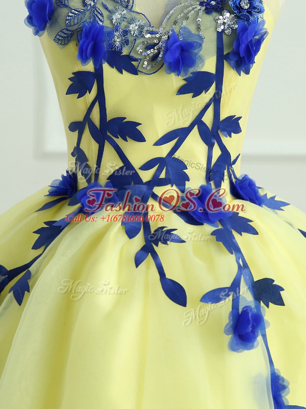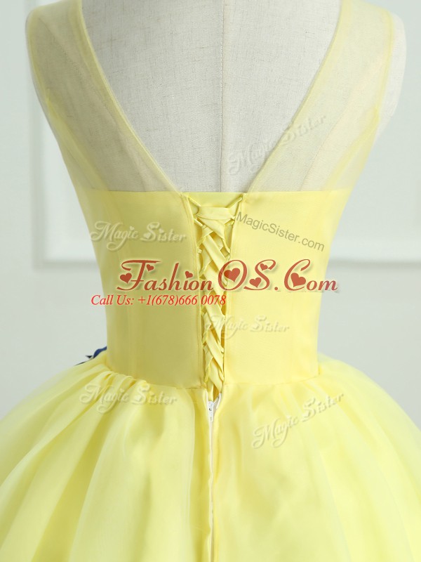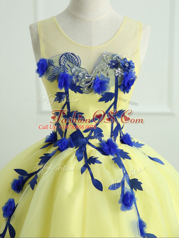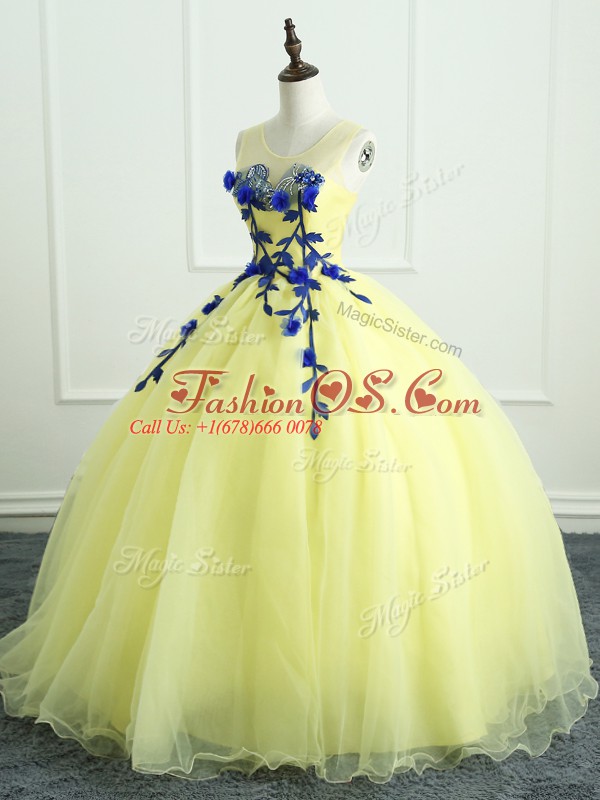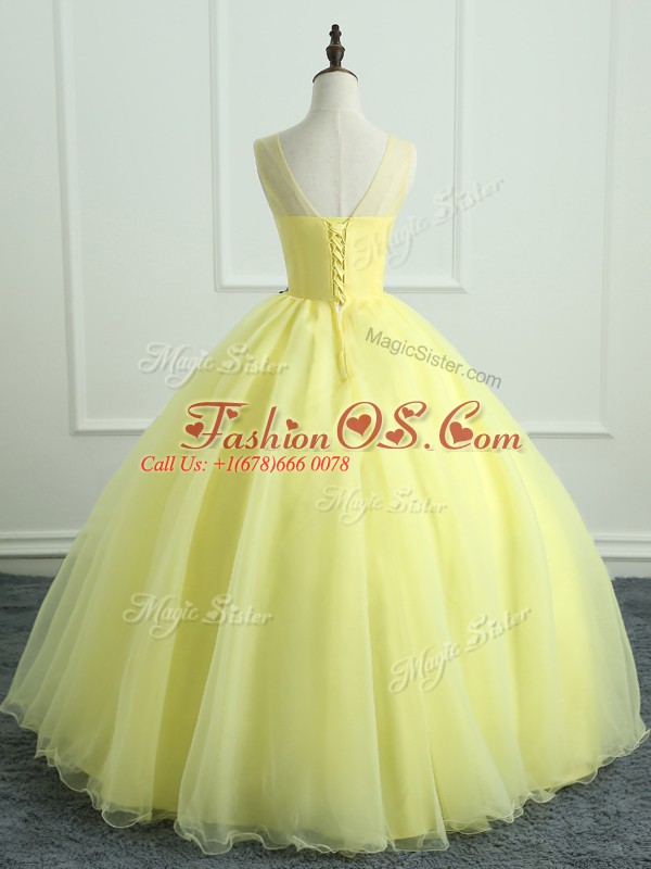 On Sale Floor Length Ball Gowns Sleeveless Light Yellow 15th Birthday Dress Lace Up