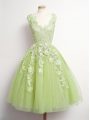 A-line Bridesmaids Dress Lavender Scalloped Tulle Cap Sleeves Knee Length Lace Up