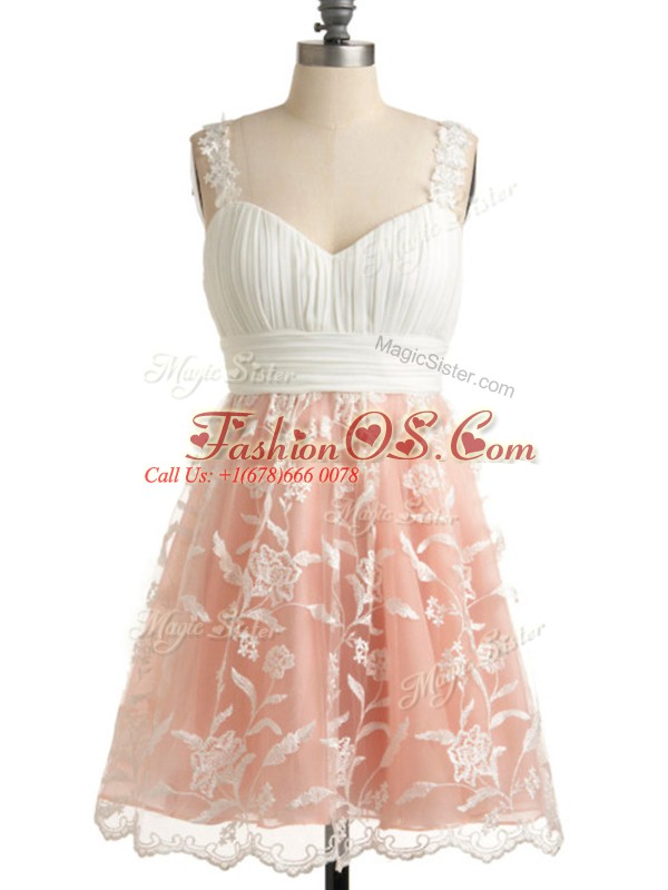Lace Bridesmaids Dress Peach Lace Up Sleeveless Knee Length
