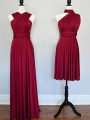 Artistic Rose Pink Tulle Lace Up Straps Long Sleeves Knee Length Bridesmaid Gown Appliques