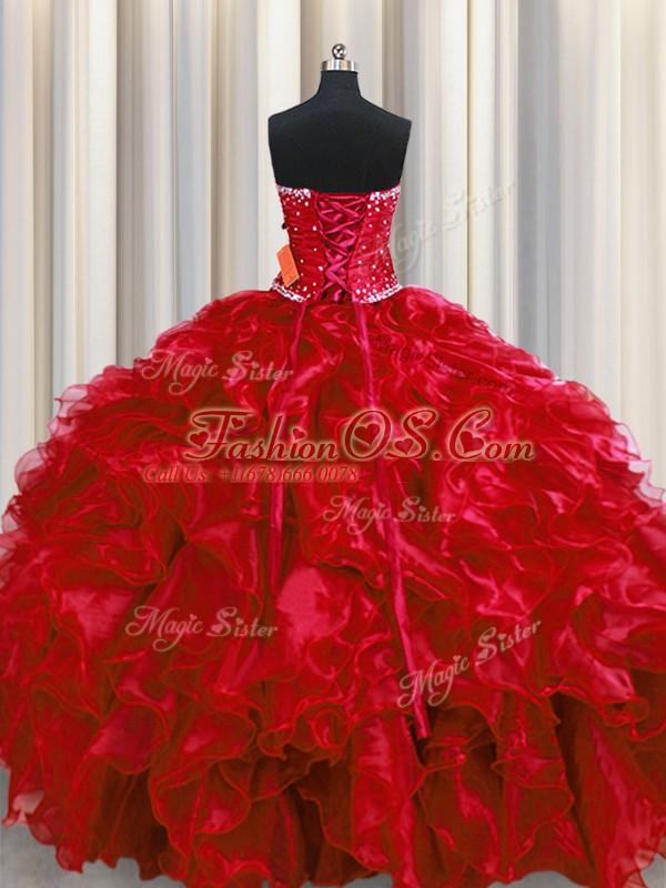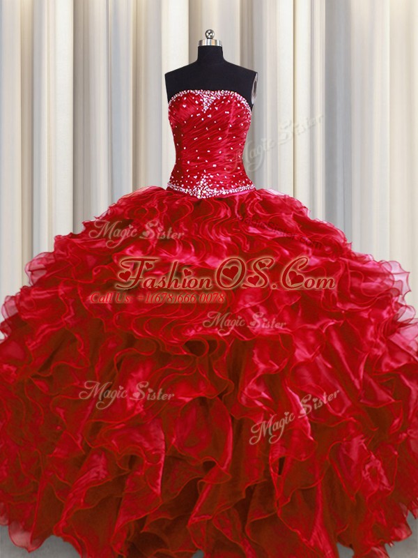 Exquisite Wine Red Sleeveless Floor Length Beading and Ruffles Lace Up Quince Ball Gowns