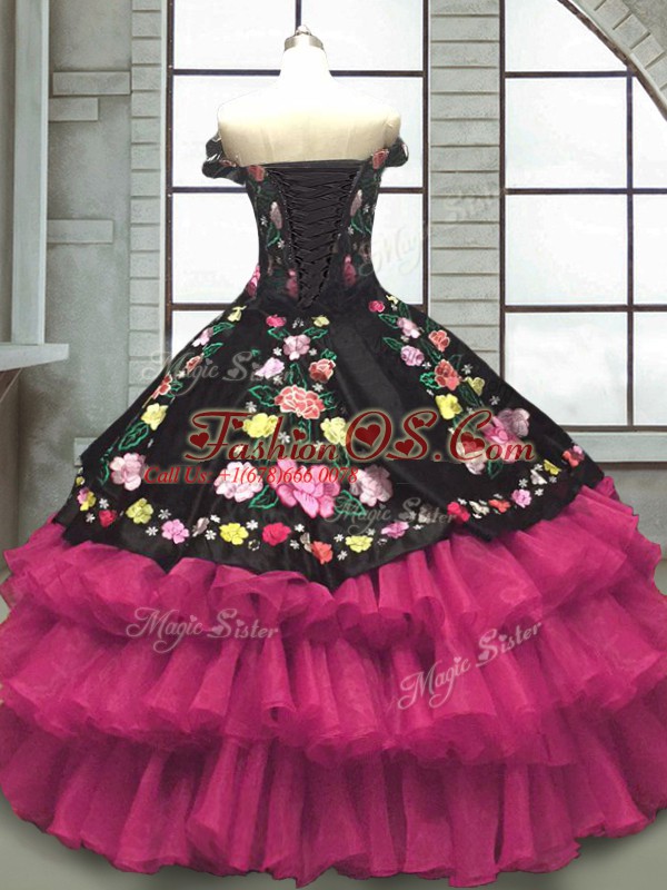 Sweet Organza and Taffeta Sleeveless Floor Length Quince Ball Gowns and Embroidery and Ruffled Layers