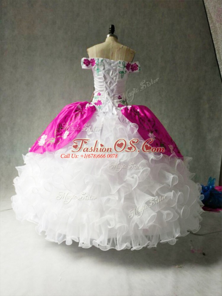 Cheap Cap Sleeves Floor Length Embroidery and Ruffles Lace Up 15 Quinceanera Dress with Multi-color