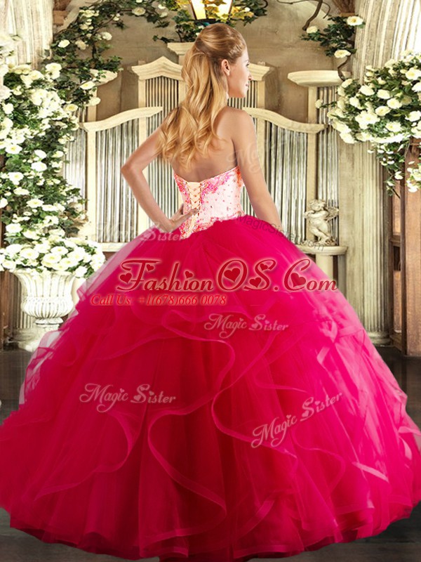 Ball Gowns Vestidos de Quinceanera Fuchsia Sweetheart Tulle Sleeveless Floor Length Lace Up