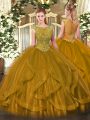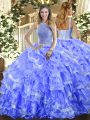 Vintage Floor Length Zipper Ball Gown Prom Dress Blue for Military Ball and Sweet 16 and Quinceanera with Ruffles
