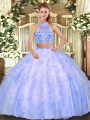 Ball Gowns Sweet 16 Quinceanera Dress Lavender Scoop Tulle Sleeveless Floor Length Clasp Handle