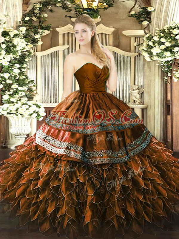 Exquisite Floor Length Brown Sweet 16 Dress Sweetheart Sleeveless Zipper