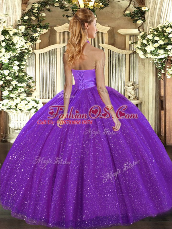 Romantic Rust Red Tulle Lace Up Sweet 16 Quinceanera Dress Sleeveless Floor Length Sequins