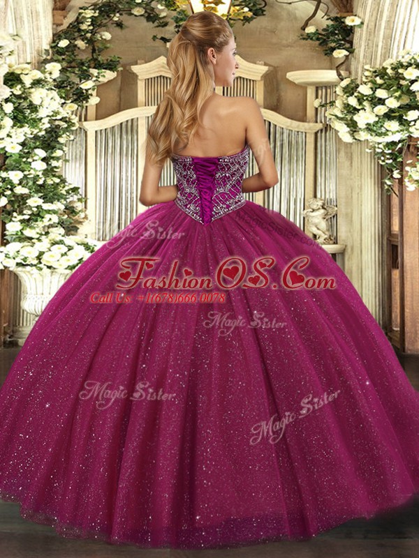 Fuchsia Sweetheart Lace Up Beading 15 Quinceanera Dress Sleeveless