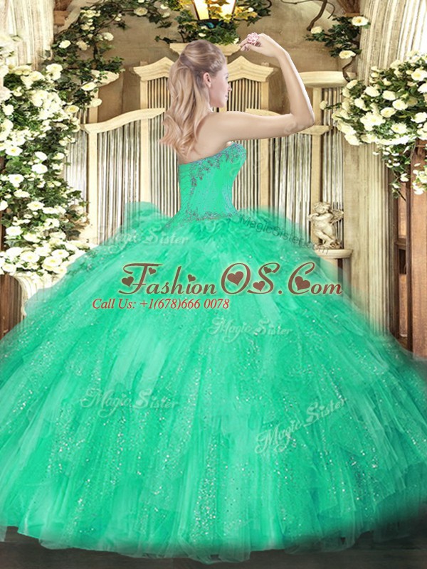 Tulle Sweetheart Sleeveless Lace Up Beading and Ruffles 15th Birthday Dress in Green