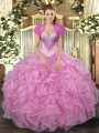 Sweetheart Sleeveless Lace Up 15th Birthday Dress Baby Pink Organza