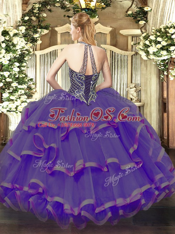 Ball Gowns Sweet 16 Quinceanera Dress Gold Halter Top Organza Sleeveless Floor Length Lace Up