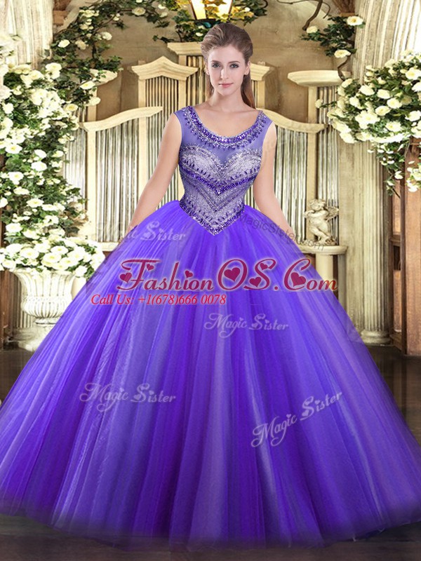 Eggplant Purple Sleeveless Floor Length Beading Lace Up 15th Birthday Dress