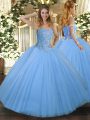 Traditional Tulle Sleeveless Floor Length Quinceanera Dresses and Beading
