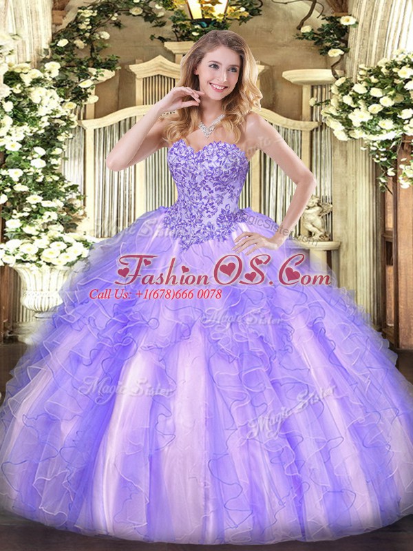 On Sale Ball Gowns Quinceanera Gowns Lavender Sweetheart Tulle Sleeveless Floor Length Lace Up