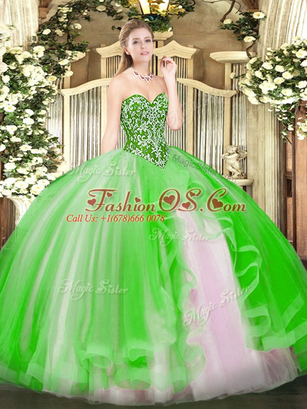Exceptional Sweetheart Neckline Beading and Ruffles Sweet 16 Dress Sleeveless Lace Up