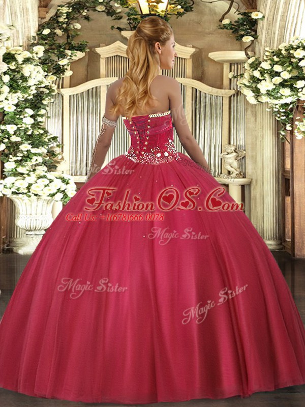Floor Length Fuchsia Vestidos de Quinceanera Strapless Sleeveless Lace Up