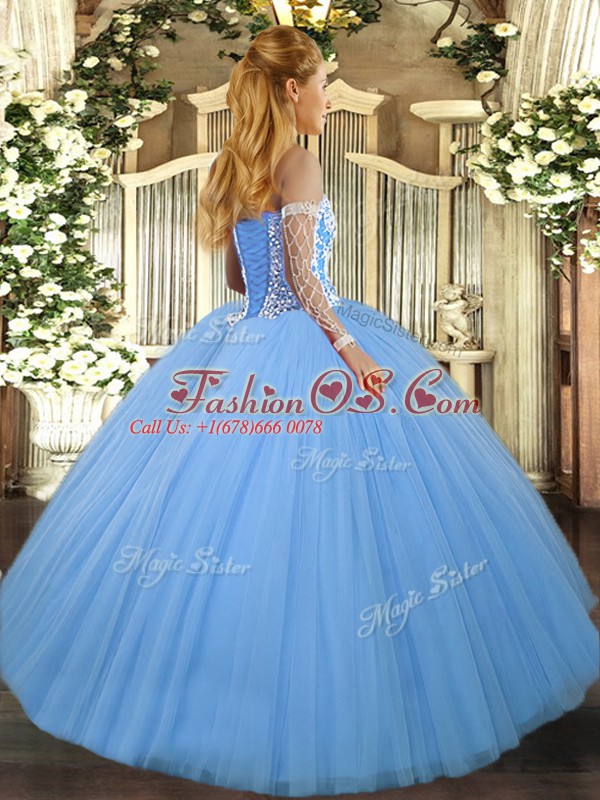 New Arrival Sleeveless Tulle Floor Length Lace Up Quinceanera Gown in Aqua Blue with Beading