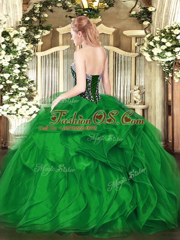 Modest Brown Ball Gowns Organza Sweetheart Sleeveless Beading and Ruffles Floor Length Lace Up Quinceanera Dress