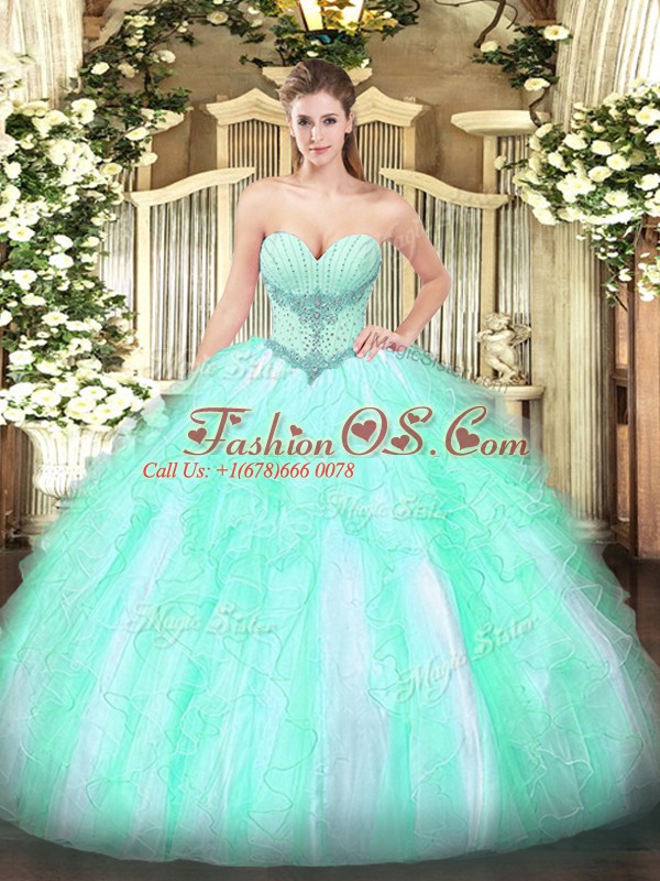 Apple Green Ball Gowns Tulle Sweetheart Sleeveless Beading and Ruffles Floor Length Lace Up Quinceanera Gown