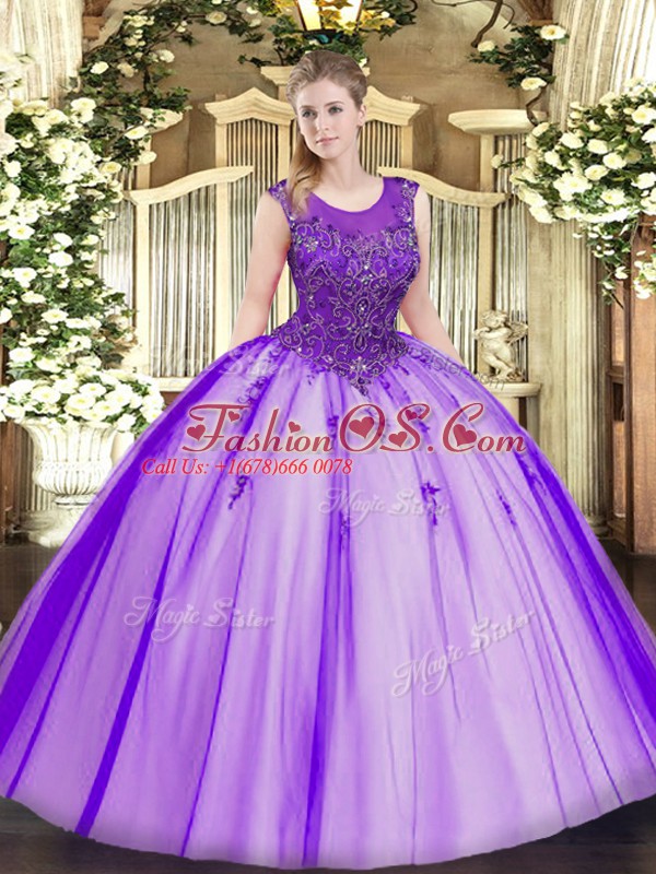 Super Purple Tulle Zipper Scoop Sleeveless Floor Length Sweet 16 Quinceanera Dress Beading