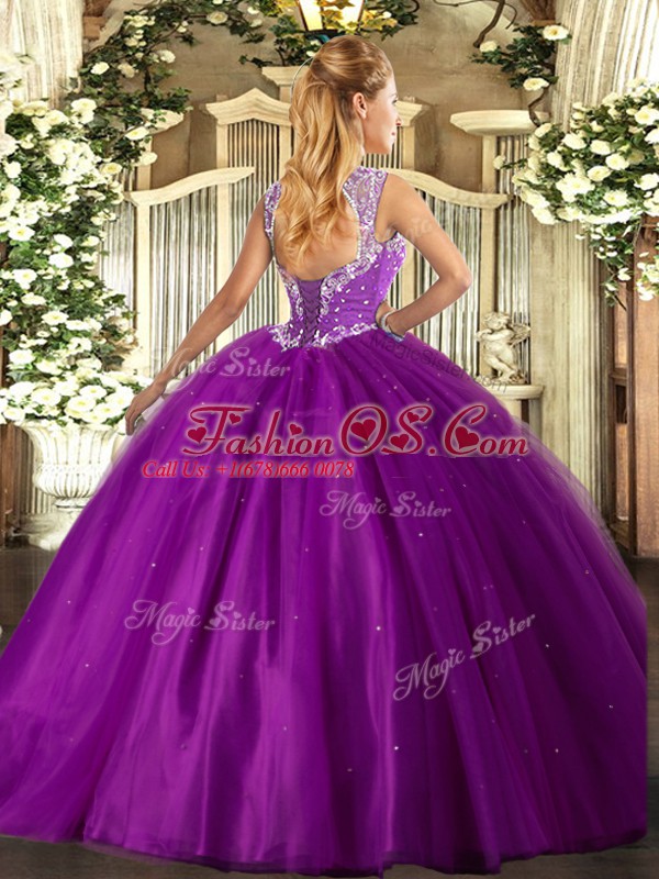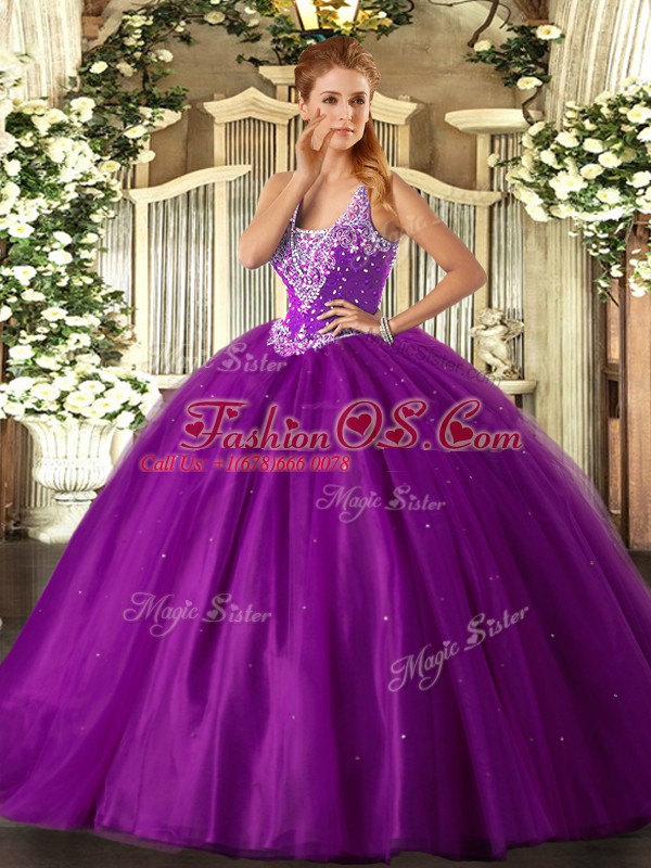 Straps Sleeveless Tulle Sweet 16 Quinceanera Dress Beading Lace Up